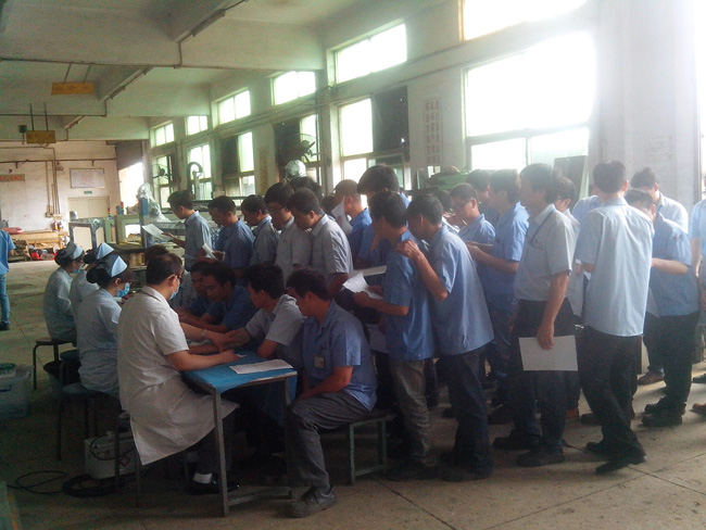 近日公司組織了全體員工的年度體檢活動,把關(guān)愛員工身體健康的措施進一步落實。醫(yī)院體檢車直接開到公司大院內(nèi)對全體員工進行體檢。當(dāng)員工井然有序地排隊抽血、拍片、查血壓等項目時,也深深體會到公司對他們的呵護。相信榮德公司的全體伙伴能夠珍惜這份工作,在工作當(dāng)中努力付出,為客戶提供高品質(zhì)、高性價比的噴涂機器人、自動化生產(chǎn)線,最大限度地達到客戶滿意。