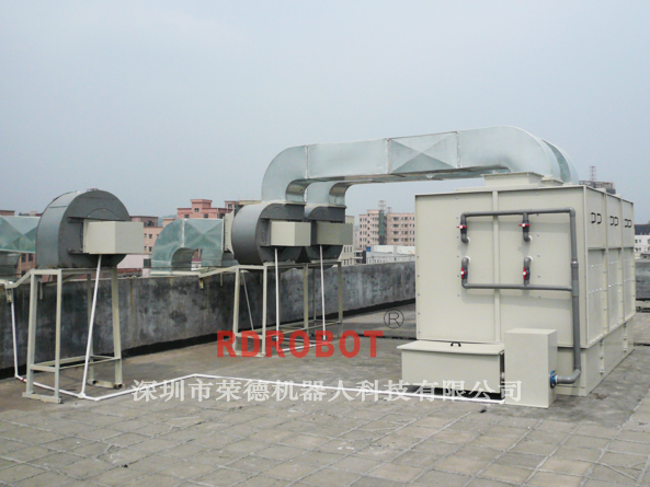 (1)廢氣處理設備設計成2套,一套處理噴涂倉的廢氣,一套處理涂層干燥、固化過程中產(chǎn)生的廢氣,設備放置在噴涂間頂上。