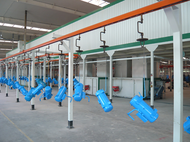 槽體采用雙面焊結(jié)構(gòu),不得有滲漏現(xiàn)象。每個(gè)槽設(shè)活動(dòng)蓋,方便操作。槽體清渣口設(shè)計(jì)成活動(dòng)門,要求密封可靠,清渣方便。槽液加熱采用燃?xì)鉄崴疇t,其中一臺(tái)供應(yīng)熱水洗和預(yù)脫脂工位,另一臺(tái)供應(yīng)脫脂和化成工位。燃燒機(jī)采用進(jìn)口意大利百得牌產(chǎn)品,全自動(dòng)控制。槽液加熱采用槽內(nèi)不銹鋼波紋板式換熱器。采用溫控儀控制電磁閥實(shí)現(xiàn)槽液控溫。溫控儀要求采用進(jìn)口產(chǎn)品,電磁閥應(yīng)采用國內(nèi)知名品牌產(chǎn)品,以確保使用性能。噴涂系統(tǒng)(泵、閥、管路等)在出光、化成、純水段材質(zhì)為SUS304,其余工位噴淋泵為鑄鋼材質(zhì),閥門、管路為碳鋼材質(zhì)。噴淋泵采用立式液下泵,泵及主要閥門采用進(jìn)口或國內(nèi)名牌產(chǎn)品;