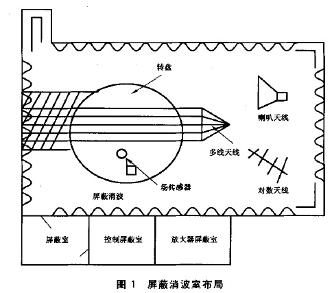 為 了 測 試操作者的安全,操作者必須被保護起來避免受到試驗場所產(chǎn)生的高頻和高強度電磁場的傷害。即便是在人員稀少的鄉(xiāng)村,開闊場地是可以接受的,但若受法律限制,至少需要一個屏蔽室。由 屏 蔽 室改造的,具有部分隔襯的屏蔽室,是使用一定數(shù)量的能吸收射頻(RF)的材料來抑制無隔襯屏蔽室的主諧波。假如能建立一個均勻場,進行的輻射抗擾性測試就可得到承認。另 一 方 面,考慮到機器人的尺寸,在對機器人進行輻射抗擾性測試期間,要達到一個較好的均勻場,推薦使用屏蔽消波室。即使局部隔襯的屏蔽室沒有消波室那么寬敞。圖 1 給 出了一個適合進行機器人 EMC測試的屏蔽消波室的布局。除消波室之外,在機器人輻射抗擾性測試期間,一些鄰近的屏蔽室通常用于放置與機器人相關(guān)的測試儀器和設(shè)備。另 外 ,使 用適當(dāng)?shù)奶炀€(即多股的傳輸線)和采用適當(dāng)?shù)臏y試設(shè)備可改善電磁場的均勻性。