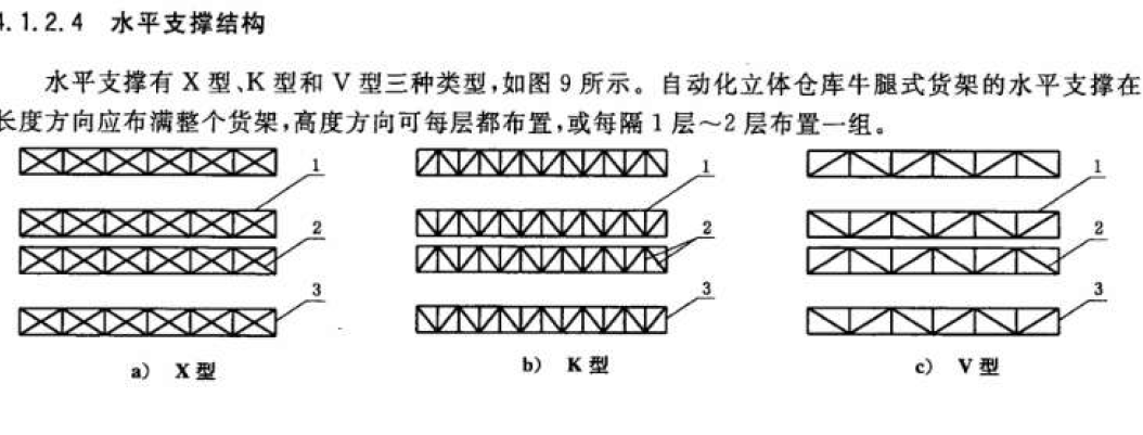 垂直支撐有X型剛性、X型柔性和Z型剛性三種類(lèi)型,自動(dòng)化立體倉(cāng)庫(kù)牛腿式貨架的垂直支撐在長(zhǎng)度方向應(yīng)布滿整個(gè)貨架